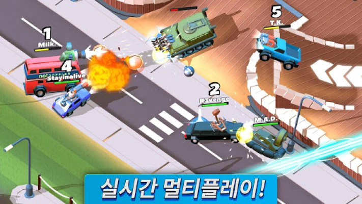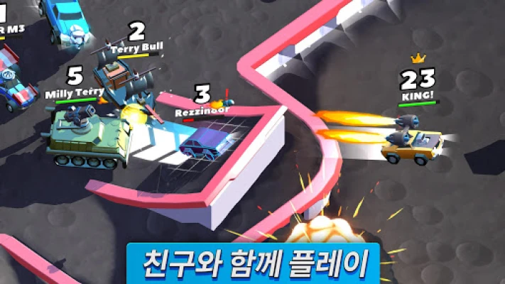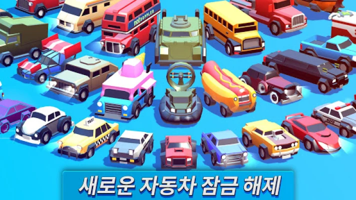 8가지 독특한 전장에서 끝없는 차량 난투극이 펼쳐집니다. 일반 등급부터 희귀, 에픽, 전설에 이르는 70가지 이상의 개성 넘치는 자동차를 잠금 해제하고, 30가지 이상의 화려한 스킨으로 나만의 스타일을 완성하세요. 페페로니 무늬 캠핑카가 전장을 누비며 승리의 포효를 내는 모습은 상상만으로도 짜릿할 것입니다! 화염방사기, 대포, 투석기 등 16가지의 업그레이드 가능한 파워업으로 무장하여 모든 전투에 전략과 예측 불가능한 재미를 더할 수 있습니다.
