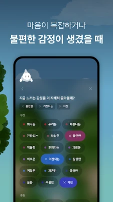 누구나 때로는 감정의 소용돌이 속에서 길을 잃고 헤매기도 합니다. 무디는 당신의 내면을 탐색하고 섬세하게 이해하는 데 도움을 주는 특별한 동반자입니다. 어떤 감정인지 모호할 때, 무디가 제공하는 다채로운 감정 태그들을 둘러보세요. 내 안의 복잡한 감정에 정확한 이름을 붙이는 순간, 마음의 실타래가 한결 풀리는 경험을 할 수 있을 거예요. 감정을 명확히 인지하는 것만으로도 당신의 내면에는 긍정적인 변화가 시작됩니다.